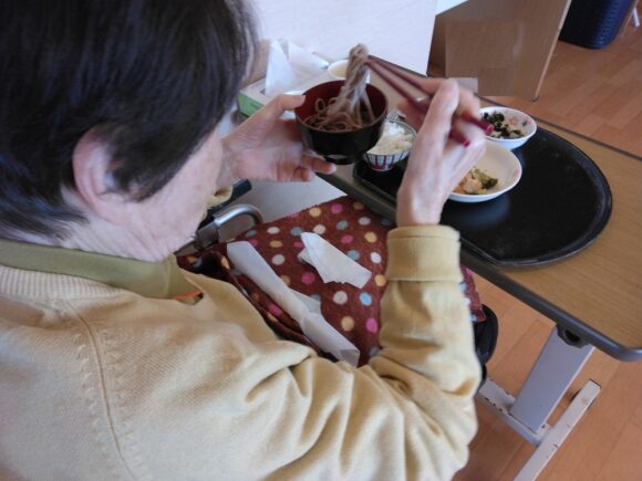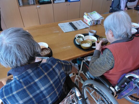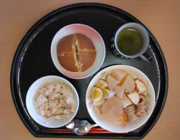 通常の麺が食べにくい方や嚥下食を召し上がられている方にも召し上がっていただけるよう、舌で潰せる柔らかいカット麺を使用しました。皆様に同じ味を楽しんでいただくことができ、年越しを感じていただけたかと思います。