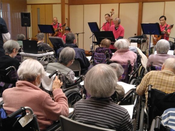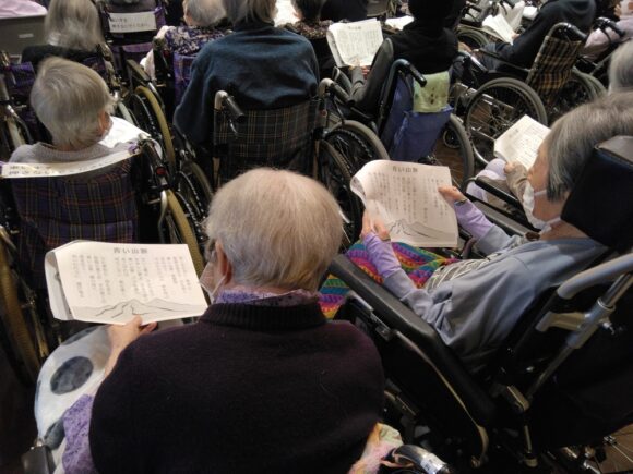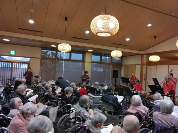 ご存知の歌も多く配られた歌詞カードを見ながら、音楽と一緒に口ずさんでいらっしゃる方や、手で指揮をとるようにリズムに乗っている方がいらっしゃいました。