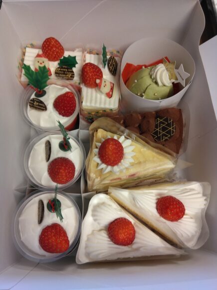 「とっても美味しいね。」「甘いのは好きだよ。」「苺が酸っぱいね。」「私はチョコケーキだけど、クリームも美味しそうだね。」「用意してくれてありがとう。」と感想をいただきました。