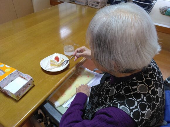 演奏をお聴きいただいた後は、ユニットに戻りご自身で選んだクリスマスケーキを召し上がっていただきました。