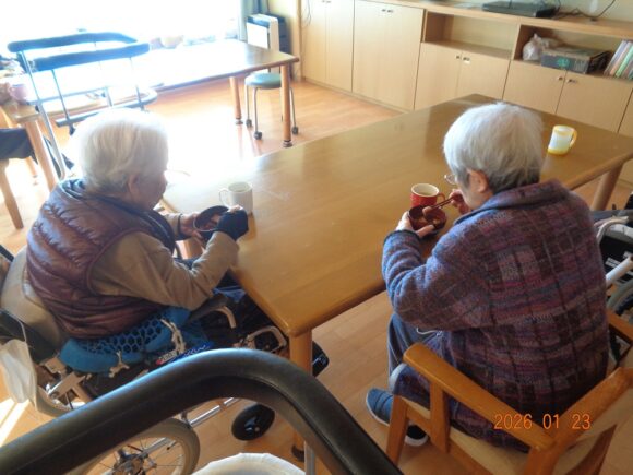 ユニットごと、おやつレクリエーションにておしるこの提供を行っています。